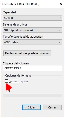 Por eso, cuando formateamos un disco duro, si te fijas, tenemos dos opciones: si marcamos la casilla de formato rápido, le estamos diciendo al sistema operativo que sencillamente marque la referencia en todos los archivos que estos están eliminados. Por el contrario, si desmarcamos esta opción, lo que hará el sistema operativo es poner a cero todos los unos y ceros que encuentre en ese disco, lo que se conoce como un formateo a bajo nivel, que puede ser en una unidad lógica (partición) o física (disco duro completo, el caso más habitual para cuando nos queremos deshacer de él, por ejemplo).