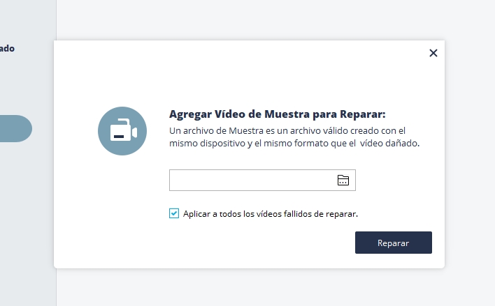 No te preocupes, aún hay esperanza. Selecciona la opción Reparación avanzada para ayudarle a Recoverit a recuperar el vídeo. Para ello, debes seleccionar un vídeo con las mismas características que el vídeo que quieras recuperar.