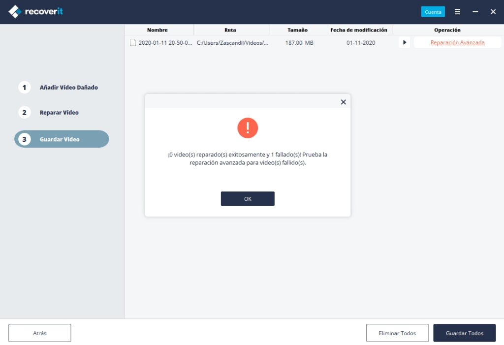 Recoverit tomará los datos de ese vídeo de referencia y los incrustará en el vídeo corrupto para reanimarlo. Si el proceso ha terminado con éxito, selecciona como siempre el directorio para enviar el vídeo recuperado et voilà! Ya tienes tu vídeo sano y salvo. Cabe mencionar que a veces no podrá recuperar vídeos enteros o que estos no siempre estarán completos, pero ante casos de emergencia extrema puede ser de muchísima utilidad.