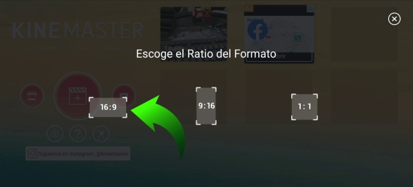 Pero vamos a detenernos en este botón de «+» que nos permitirá crear un proyecto de manera más «manual». Escogemos el ratio, si queremos un vídeo en 16:9 horizontal, 9:16 para vídeo vertical o 1:1 para vídeo cuadrado tipo Instagram.